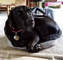 We stayed with Lizbeth, my husband’s accounting assistant and her little dog, Toby McGee. Strider forgot his bed so he decided to claim Toby’s. “Look, Mom, I fit!”